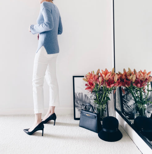 LP011782粉藍色V領冷衫